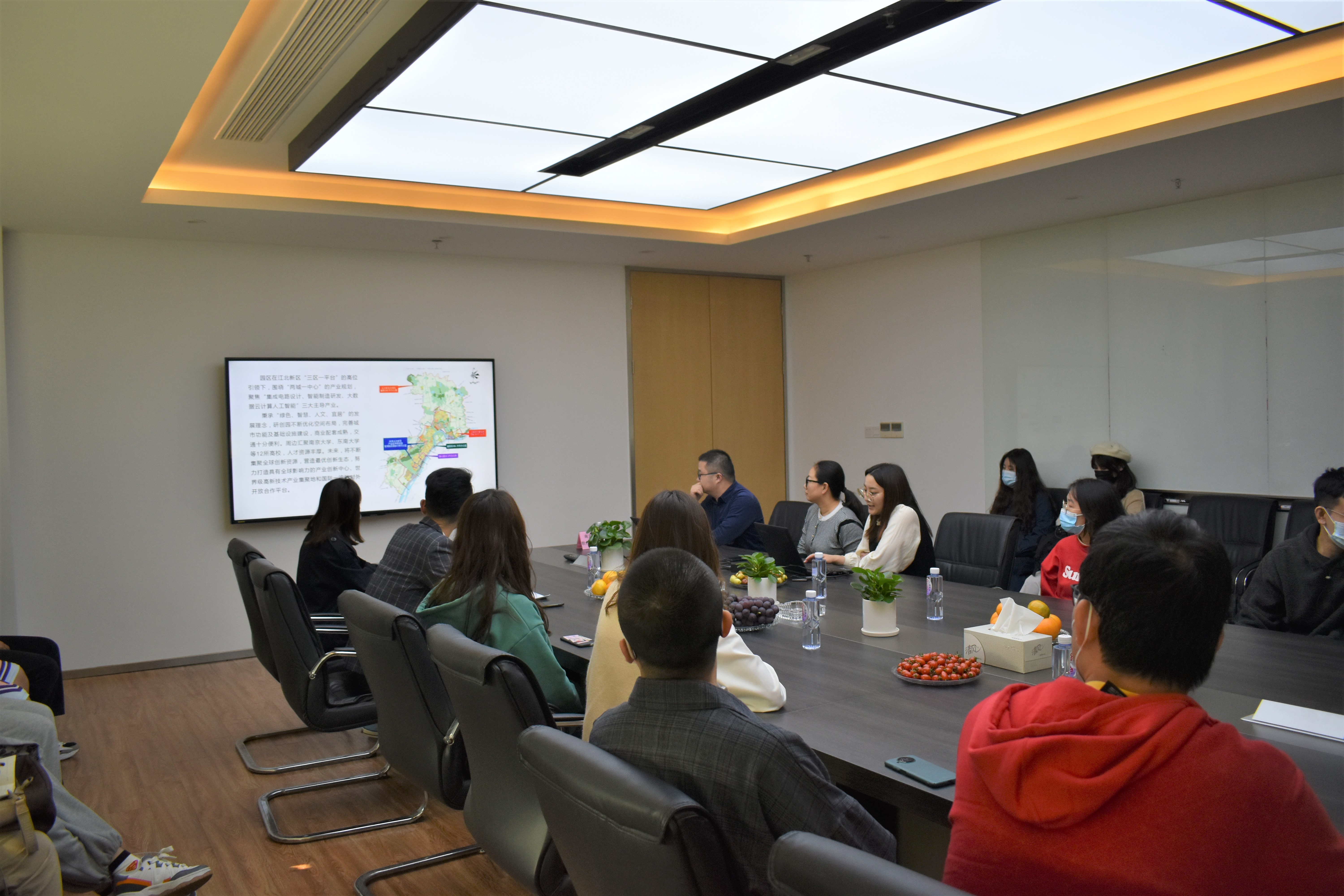 活动伊始,南大尚诚人事经理刘晓彬首先对研创园园区以及公司概况进行了简单介绍。随后,售前工程师李青泽以及研发经理朱建国介绍了公司的技术产品、服务项目以及突破方向等,着重介绍了公司致力于提供智慧农业综合解决方案服务的相关案例,如利用区块链、大数据等新一代信息技术,按照农村改革“确权、赋能、搞汪三步走的总体思路,实现农村集体资产监管、产权交易流转、产权制度改革、普惠金融服务的创新融合,支撑深化农村改革工作的开展,为农民增收、农村经济设展提供新动力,全面助力乡村振兴。接着,学院师生一行简单介绍了萝莉岛