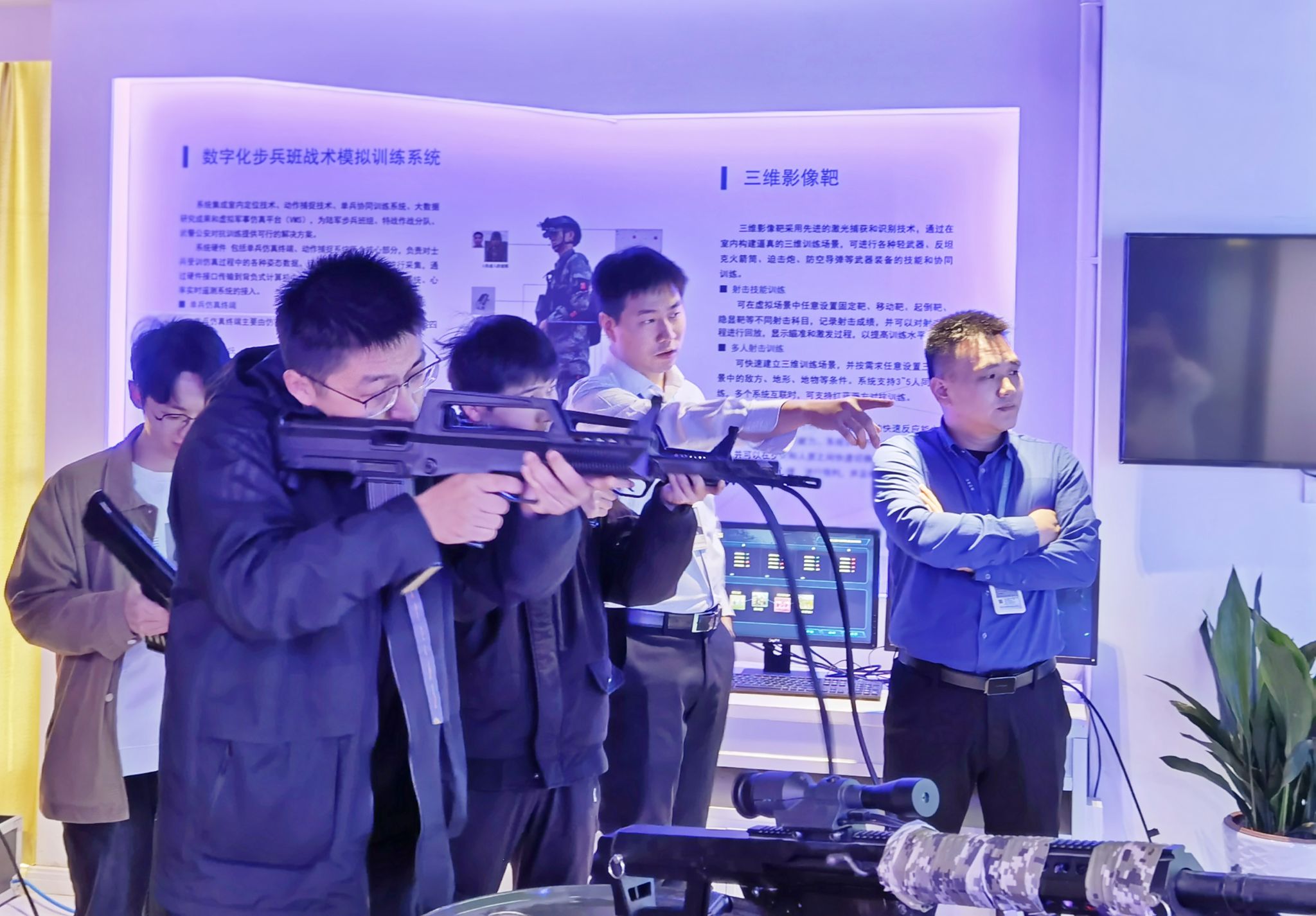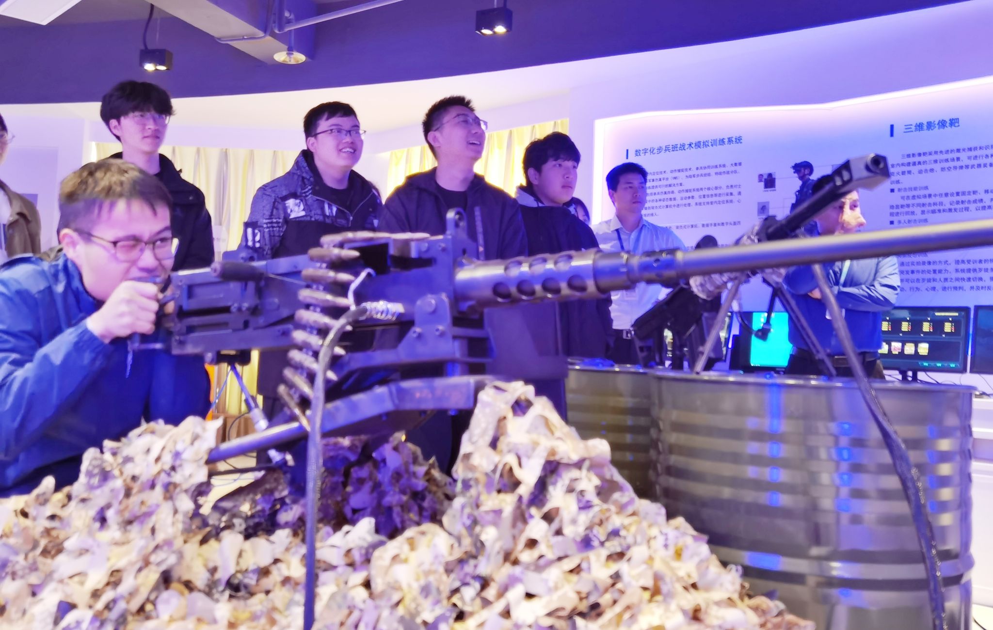 活动伊始,师生参观了公司产品展厅,充分了解公司软硬件产品的同时,顺利开展“沉浸式国防教育”,深度体验95式步枪、92式手枪及M2式重机枪射击。