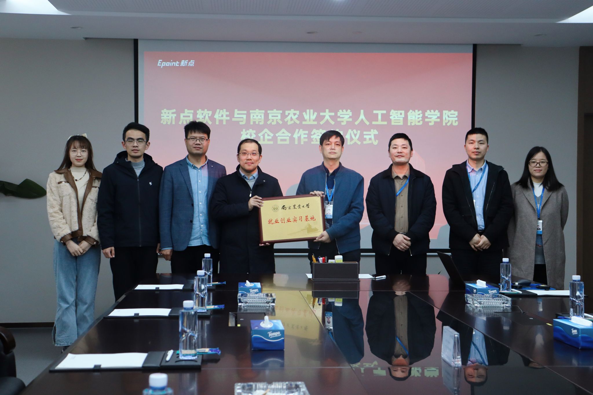 为进一步深入推进校企合作,双方代表签订了就业创业实习基地共建协议,并进行了授牌仪式。
